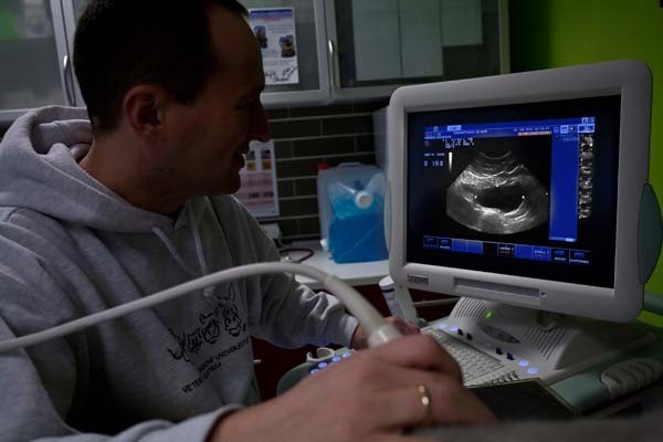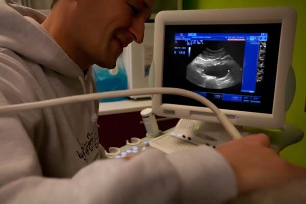 Bei der Darstellung der inneren Struktur der Weichteile spielt die bildgebende Ultraschall Diagnostik ihre Trümpfe aus. Mit einer variablen Frequenz von 5,5 bis 8 MHz und Schallköpfen in verschiedenen Größen und Formen kann bei unserem Gerät der Untersuchungsbereich an unterschiedliche Gewebetypen und Körpermaße angepasst werden. Dadurch ist eine schmerzfreie und gesundheitlich unbedenkliche Untersuchung verschiedenster Tierarten - vom Axolotl bis zum Schäferhund - möglich.