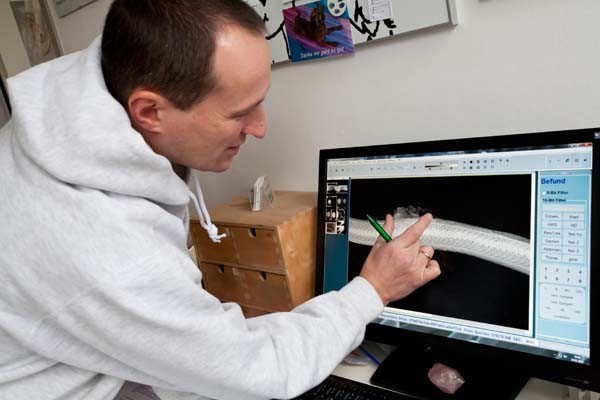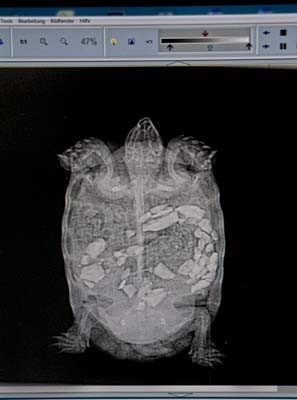 Seit 2008 fertigen wir in unserer Ordination digitale Röntgenbilder an. Durch die computergestützte Bildbearbeitung können Helligkeit und Kontrast auf dem Bildschirm verändert und Details beliebig vergrößert oder vermessen werden. Das ermöglicht uns als Tierärzten eine viel sicherere Beurteilung des Röntgens und dient gleichzeitig dem Umweltschutz, weil wir keine giftigen Chemikalien zur Bildentwicklung benötigen. Im Dezember 2019 haben wir ein Upgrade vorgenommen und verfügen jetzt über die neueste Technologie!